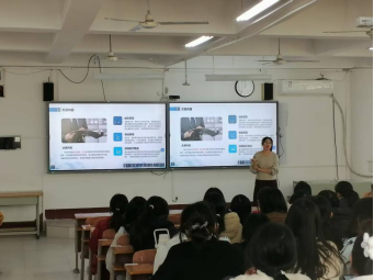 随后,药学系辅导员老师,学生职业生涯规划导师刘飒就参赛作品的设计与呈现进行专项辅导。她从设计原则、内容架构到现场演示技巧等多个维度展开讲解,强调参赛作品应结合专业特色,做到重点突出、逻辑清晰、视觉协调,切实体现职业生涯规划的可行性与个人特色,有效展现学生的职业目标、发展路径与阶段性计划。