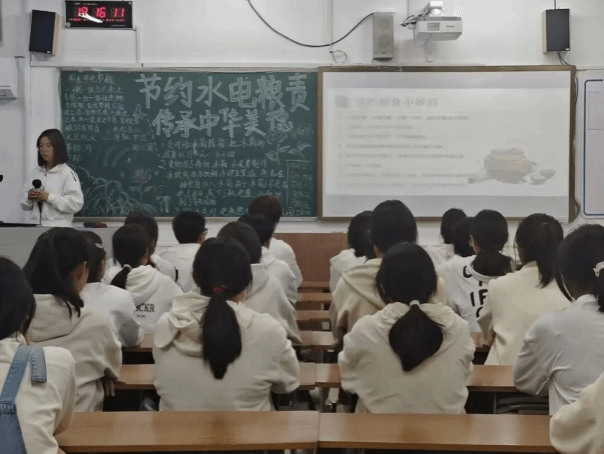 团课开始,各班团支部书记组织观看视频、图片,让团员们认识到水、电的重要性,以及粮食的来之不易,并讲解了生活中的种种浪费现象,紧接着各班团支书通过一些小故事让团员们树立起正确的用水用电观念和节俭观念,积极倡导团员们养成良好的节水节电、珍惜粮食的习惯,形成一个良好校园风气。最后,各班团支书呼吁团员青年把“节粮节水节电”落实到平时的生活中,从现在做起、从自己做起、从点滴做起,养成良好的节俭习惯,形成崇尚节俭的道德风尚。