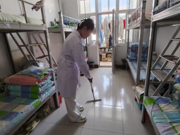 活动当天,各宿舍成员在辅导员的带领下分工明确、团结协作。同学们纷纷拿起扫帚、拖把、抹布等清洁工具,对宿舍的每一个角落进行了彻底清扫。大家重点清理了地面长期积累的粉尘,这些粉尘不仅影响环境卫生,还可能成为结核菌的藏身之所;同时,对宿舍周边的垃圾进行了全面清理,做到不留死角。