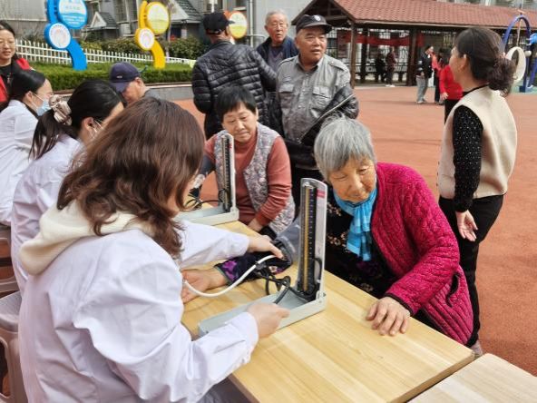 活动当天,志愿服务队分为健康服务、环境整治和宣传科普三个小组展开工作。健康服务组在社区广场设立便民服务点,依托专业优势为老年居民测量血压、解答健康问题,针对春季高发疾病给予饮食作息指导,累计服务50余人次。环境整治组手持清洁工具,对社区楼道、公共区域进行卫生清扫,重点清理墙面"牛皮癣"小广告,助力社区环境焕新颜。宣传科普组通过发放《春季传染病防治指南》手册、开展互动问答等方式,向居民普及流感、诺如病毒等防控知识。"同学们不仅技术专业,还特别有耐心,就像自家孩子一样贴心。"社区居民张奶奶对志愿服务连连称赞。