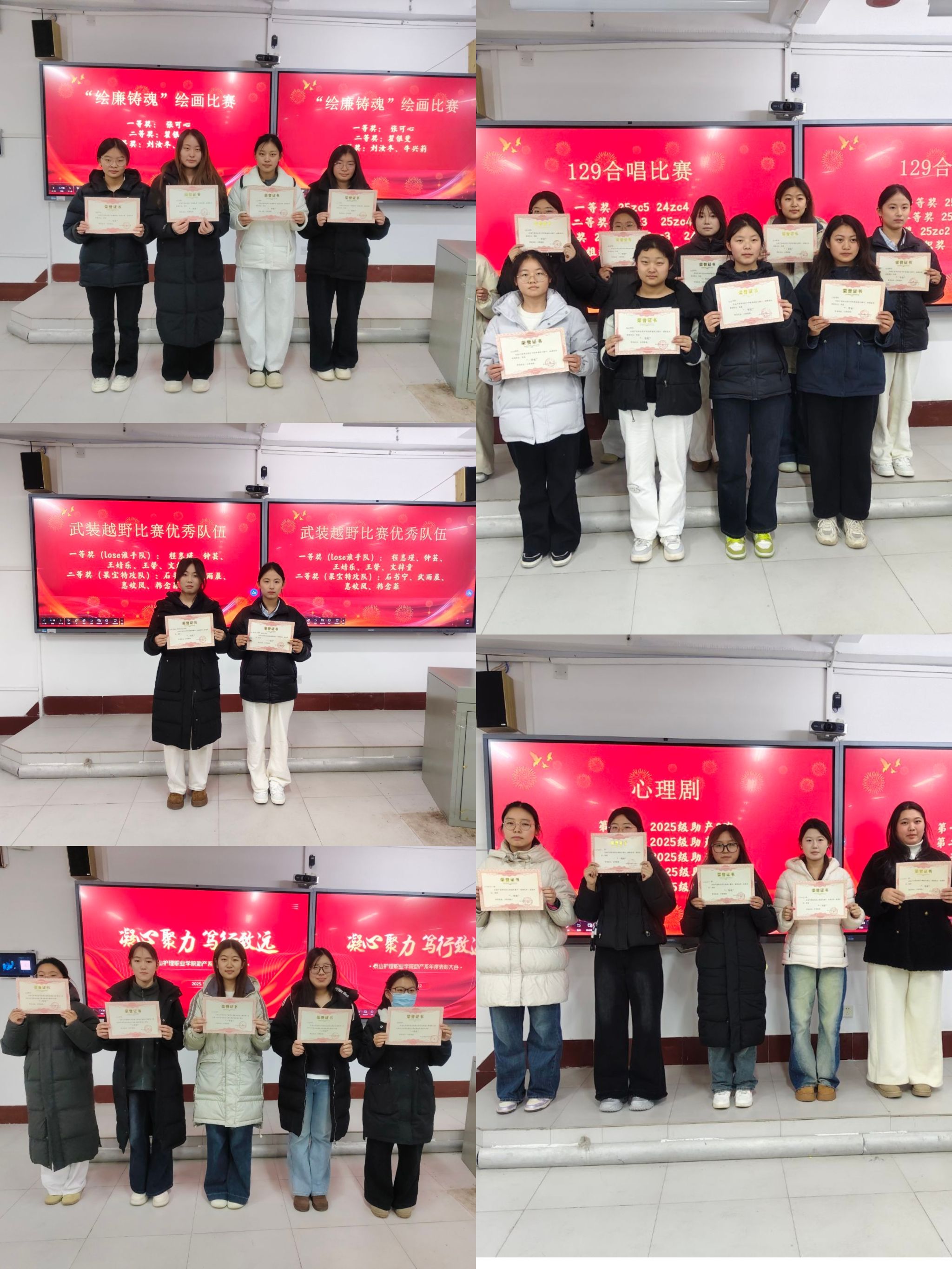 大会以凝心聚力、笃行致远为导向,对优秀学生干部、优秀工作者(干事、副部)予以表彰,嘉奖为系部建设倾力奉献的学子;同时为在129合唱、绘廉铸魂绘画、武装越野、心理剧等各类赛事中斩获佳绩的集体与个人颁奖,彰显学子综合素养。现场获奖学生手持证书合影留念,掌声不断、氛围热烈。